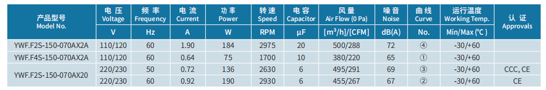 產(chǎn)品型號 YWF.F2S-150-070AX2A