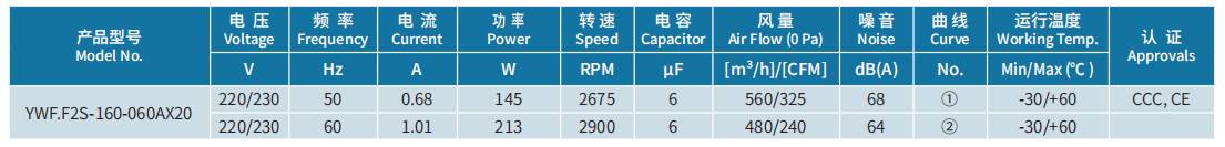 產(chǎn)品型號(hào) YWF.F2S-160-060AX20