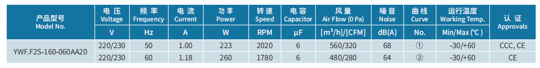 產(chǎn)品型號 YWF.F2S-160-060AA20