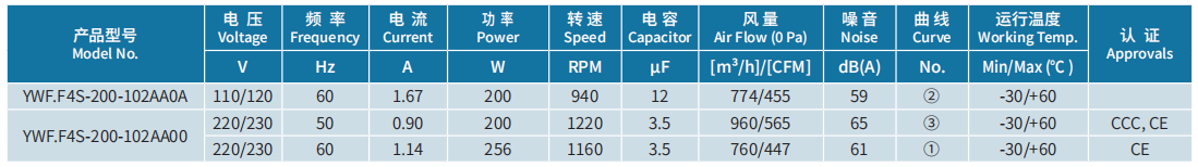 產(chǎn)品型號(hào) YWF.F4S-200-102AA0A