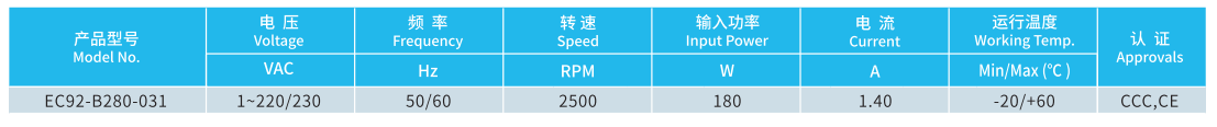 產品型號 EC92-B280-031