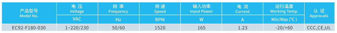 產(chǎn)品型號(hào) EC92-F180-030