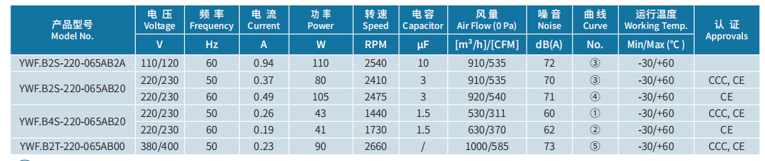 產(chǎn)品型號(hào) YWF.B2S-220-065AB20