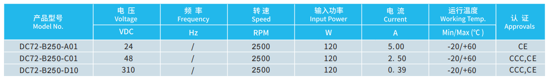 產(chǎn)品型號(hào) DC72-B250-A01