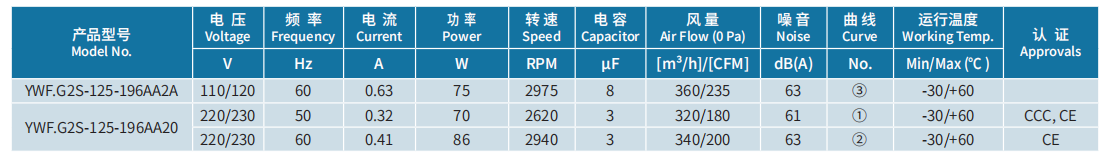 產(chǎn)品型號 YWF.G2S-125-196AA2A
