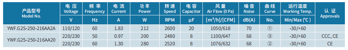 產(chǎn)品型號 YWF.G2S-250-216AA2A