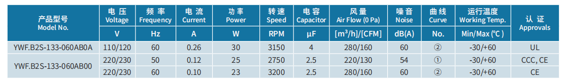 產(chǎn)品型號(hào) YWF.B2S-133-060AB0A