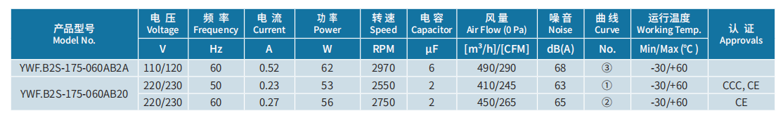 產(chǎn)品型號(hào) YWF.B2S-175-060AB2A
