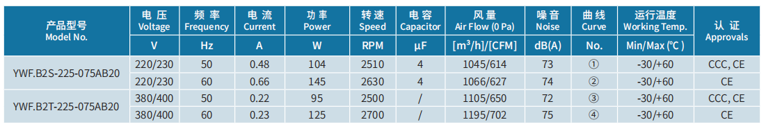 產(chǎn)品型號 YWF.B2S-225-075AB20