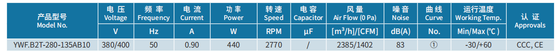 產(chǎn)品型號(hào) YWF.B2T-280-135AB10